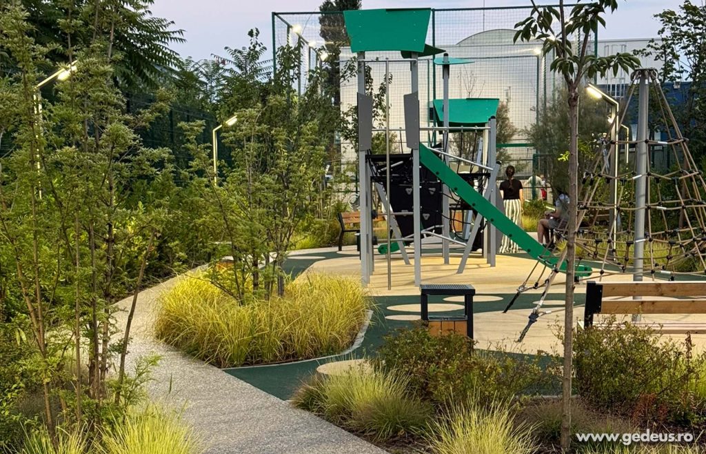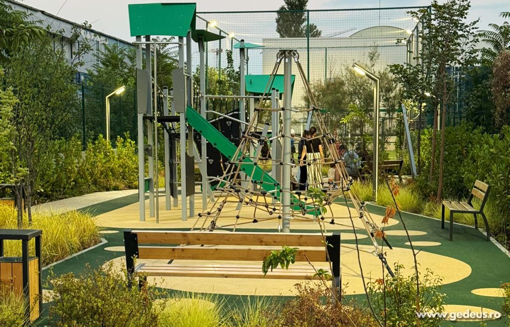 În ceea ce privește echipamentele de joacă, colaborarea cu Vinci Play a avut un rol esențial în conturarea acestui proiect, prin integrarea unor elemente adaptate contextului urban actual. Selecția echipamentelor a avut la bază diversitatea utilizatorilor, spațiul fiind dedicat copiilor de la vârste fragede, dar și adolescenților și adulților. Echipamentele sunt realizate din materiale reciclabile, prietenoase cu mediul, în completare cu oțelul și metalul. Amplasarea lor s-a realizat la distanțe conforme pentru a garanta siguranța utilizatorilor.
